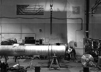 Fire in the hole: A man uses an acetylene torch on a component under construction at WahlcoMetroflex in Lewiston