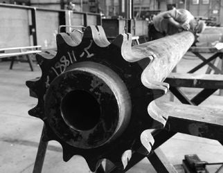 Getting in gear: A worker fine tunes a sprocket-like device on a piece of equipment at WahlcoMetroflex in Lewiston