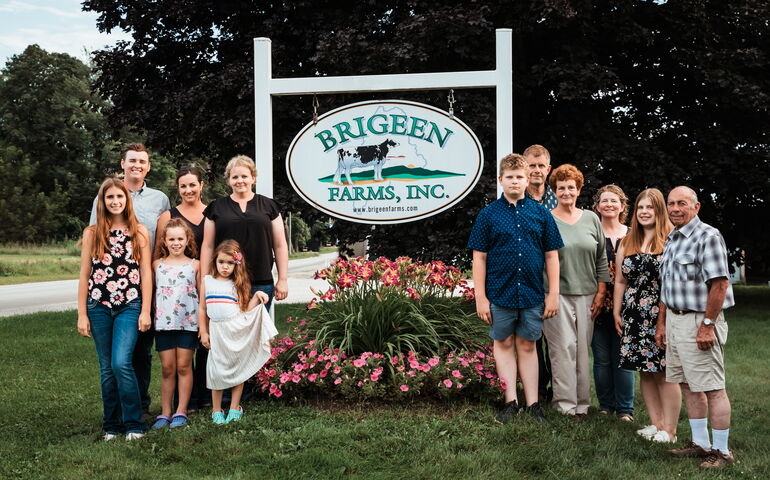 Over the past 25 years, Brigeen Farms has grown from 65 milking cows to a herd of 580 registered Holstein cows, plus more than 800 crop acres for feed production.
