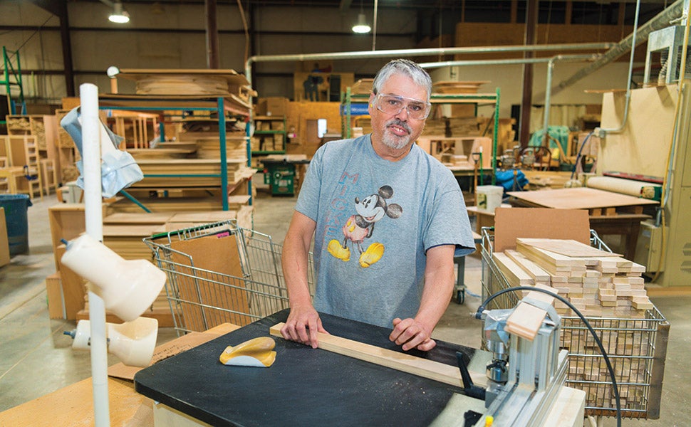 “It's a good place to work,” parts department assistant Scott David Bogdahn says as he drills a hole into a narrow strip of wood. After two decades on the payroll and the means to travel to places like Hawaii and Bermuda, he says his favorite part of the job is his co-workers. “You can make a lot of friends here.”