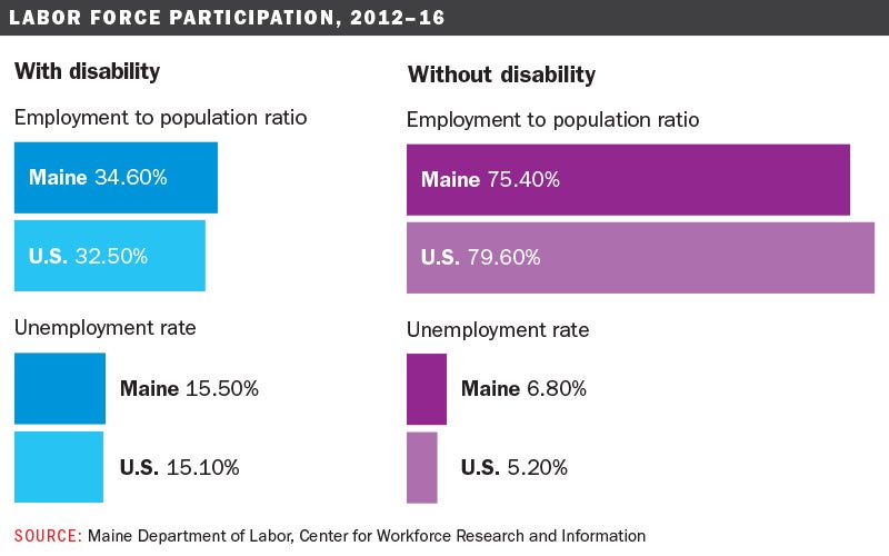 From 2012-16, fewer than a third of working-age Mainers with a disability were employed, compared to 80% employment for others, according to the Maine Department of Labor.