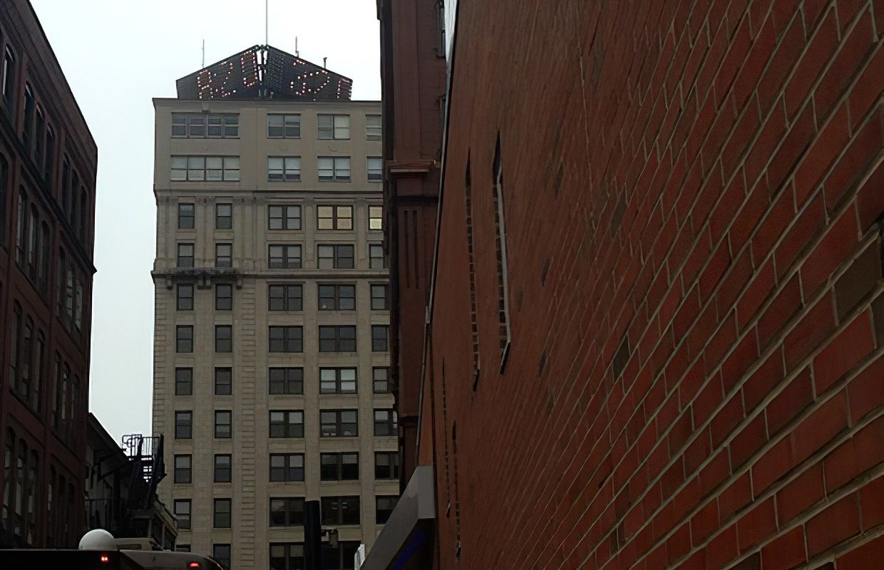 The Chapman Building, as it was originally known, dates to 1924 and had an indoor shopping center on the ground floor and served as headquarters for Casco Bank for some time. The time and temperature sign was added to the rooftop in 1964 and was grandfathered in to get around a ban on billboards.