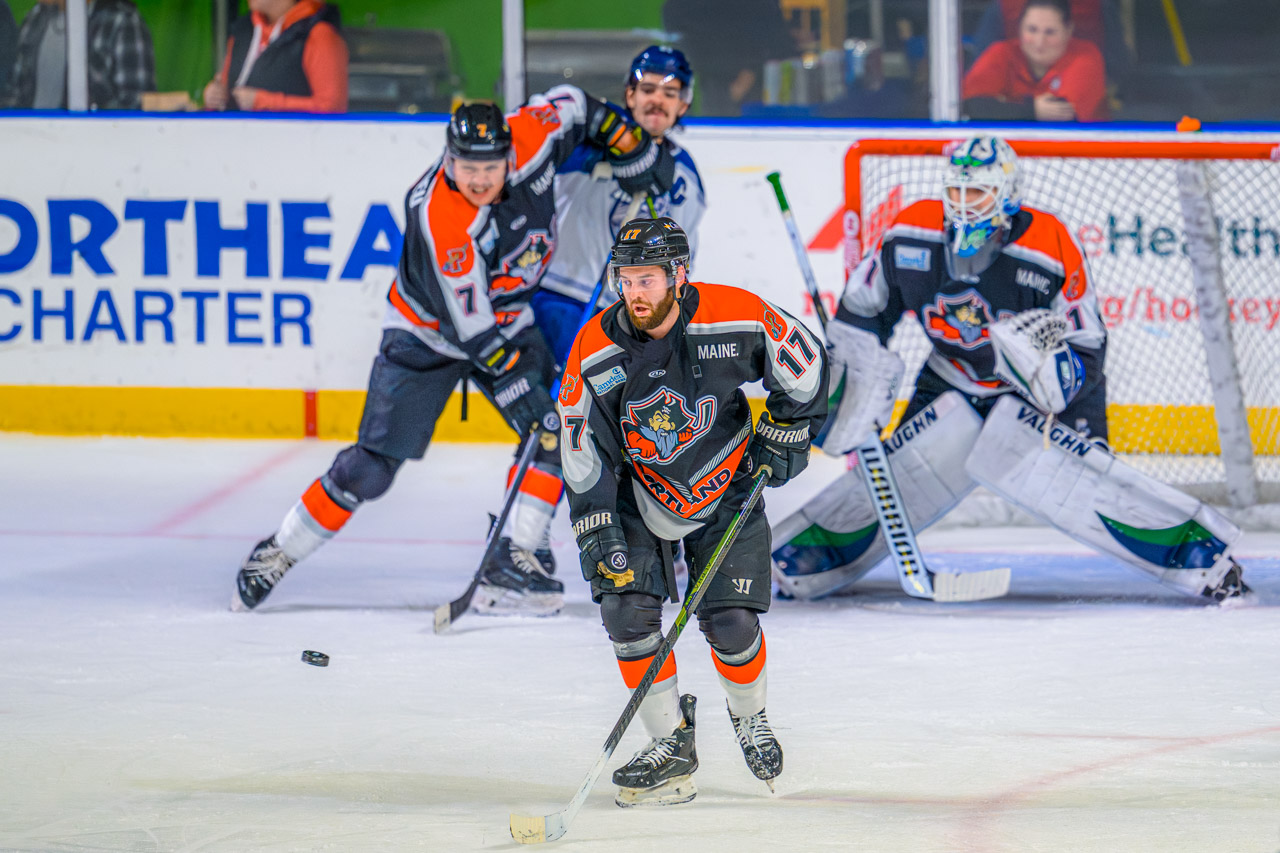 The home team scored two goals in the first period garbed in Portland Sea Dogs jerseys, netted two more in the next period branded in Maine — and Boston — Celtics green and white, and three in the final period sporting hearts on their sleeves in homage to the Hearts of Pine soccer squad.