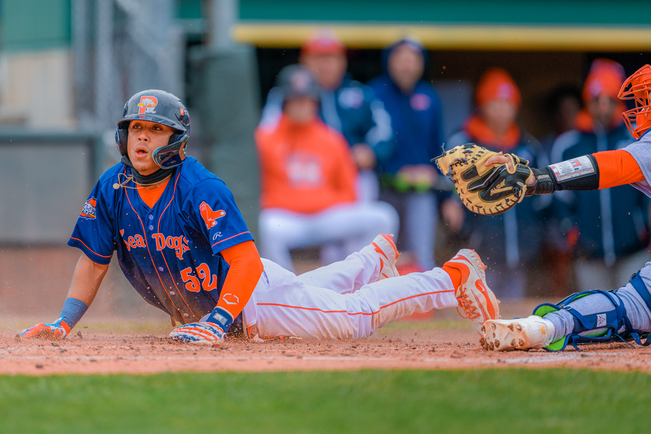With rosters in constant flux as players are promoted and reassigned, the team has been intentional about keeping Slugger as the jowled, furry face of the franchise both in the ballpark and out in the community, while play-by-play announcer Emma Tiedemann (Scaglion’s wife) is a trailblazing female voice who’ll be honored with her own talking bobblehead this summer.
