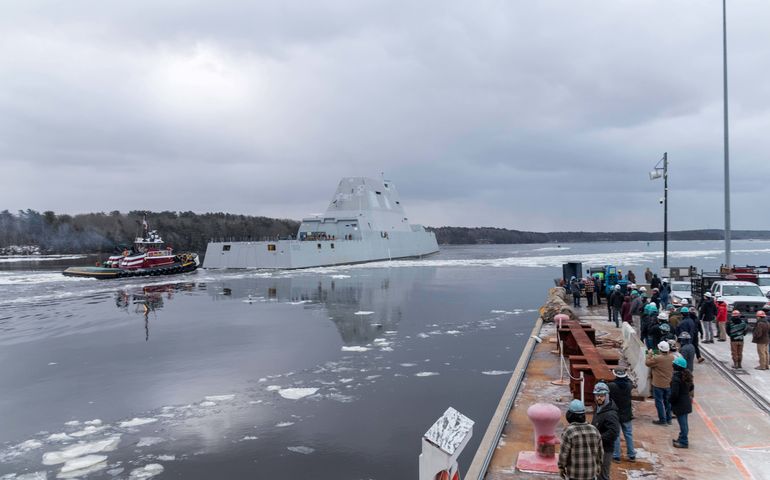 BIW built all three Zumwalts. The third and final one, the USS Lyndon B. Johnson, sailed away in 2022.
