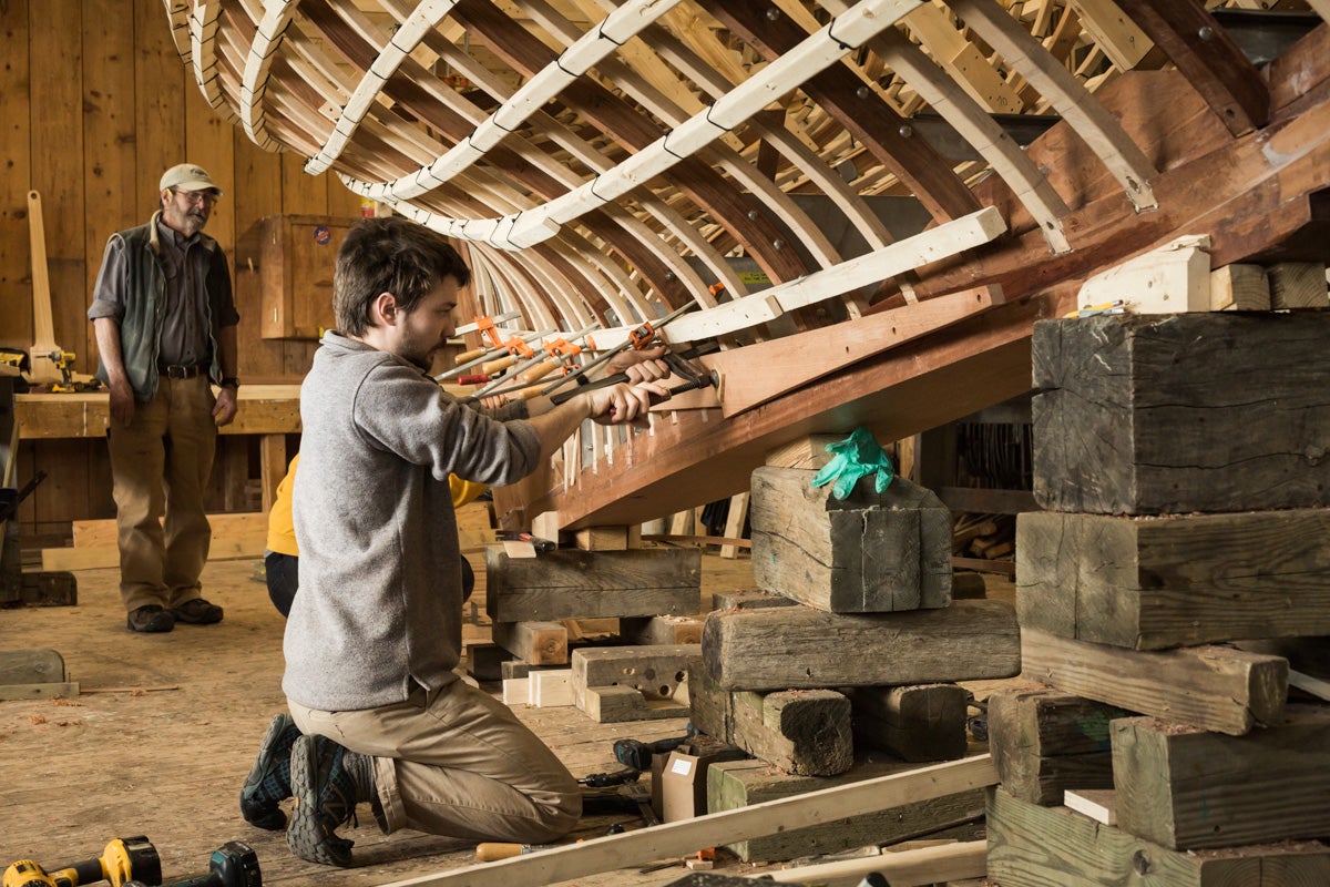 “I wasn’t thrilled with my options as a professional engineer,” Page says. “Then I started looking at my hobby of woodworking. I looked at furniture makers and guitar makers. What drew me to Maine was I grew up sailing, what drew me to Maine was boats. I started Googling and came across the Apprenticeshop.”