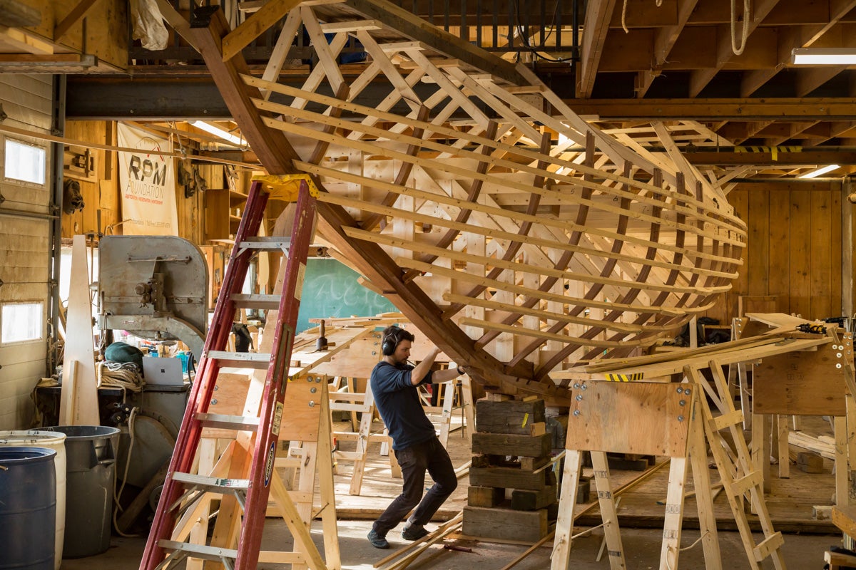 You start by building a small skiff by yourself and then gradually start working in teams.