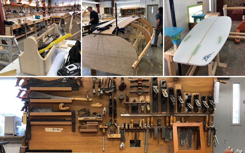 He and his wife moved here in 2018 and he enrolled in the marine systems program at the Landing School. He further developed an interest in composite construction and, as a sidelight, helped other students build surfboards.
