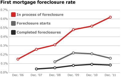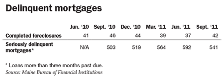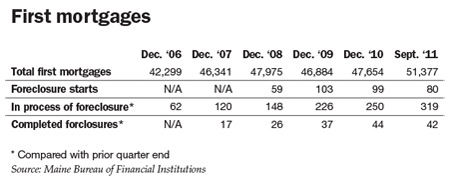 Foreclosures haven't hit Maine as hard as other places around the nation, but the state has still seen some activity over the last few years, according to the annual Bureau of Financial Institutions report to the Legislature. The bureau has been studying foreclosure and mortgage delinquency data at the 32 state-chartered financial institutions since October 2006 and releasing quarterly reports, which show the number of initiated foreclosures dropping in the third quarter of 2011, which ended Sept. 30. The number of seriously delinquent first real estate mortgages, however, is still on the increase.