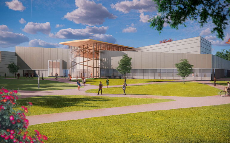 There will be 23 practice rooms along with a piano lab, and plans call for outdoor performance spaces and a sculpture garden. Student and visitor comforts have been considered with many of the floors being built to be resilient for dancers; some are wired for radiant heat. Tall windows enlighten every room and are bird safe too, with patterned glass. Dolby noted the building is expected to meet LEED Silver certification.
