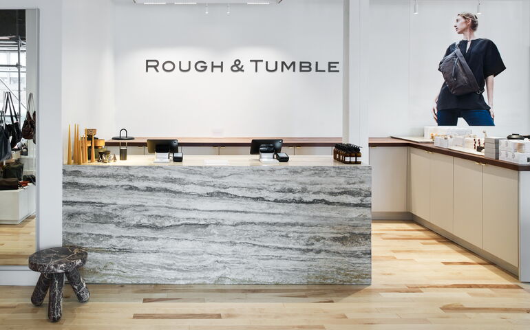 Rough & Tumble, which was founded in 2008, sells its bags through Garnet Hill and the Sundance catalog. Leathers are sourced primarily from France and Italy. It has a design studio in Brunswick.