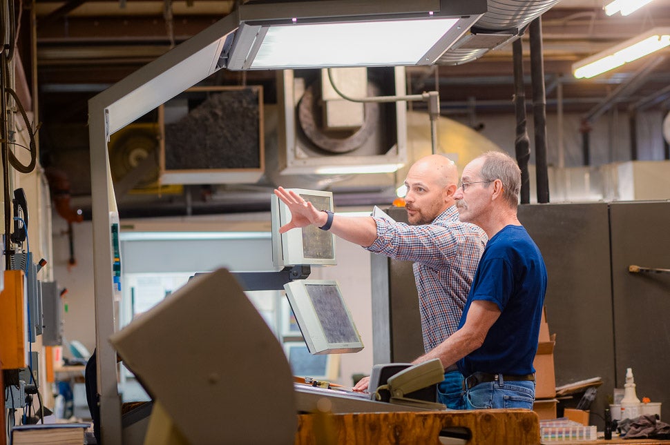 Today, Greg is sole owner and president. David is general manager, Jennifer oversees the sales team and Mike leads printing and bindery production. The company has 46 employees, some with tenures of 20 years and even 40 years or more. The number has been stable over the past few years, but down from the mid- to high-50s in the early 2000s due to the adoption of automated machinery.