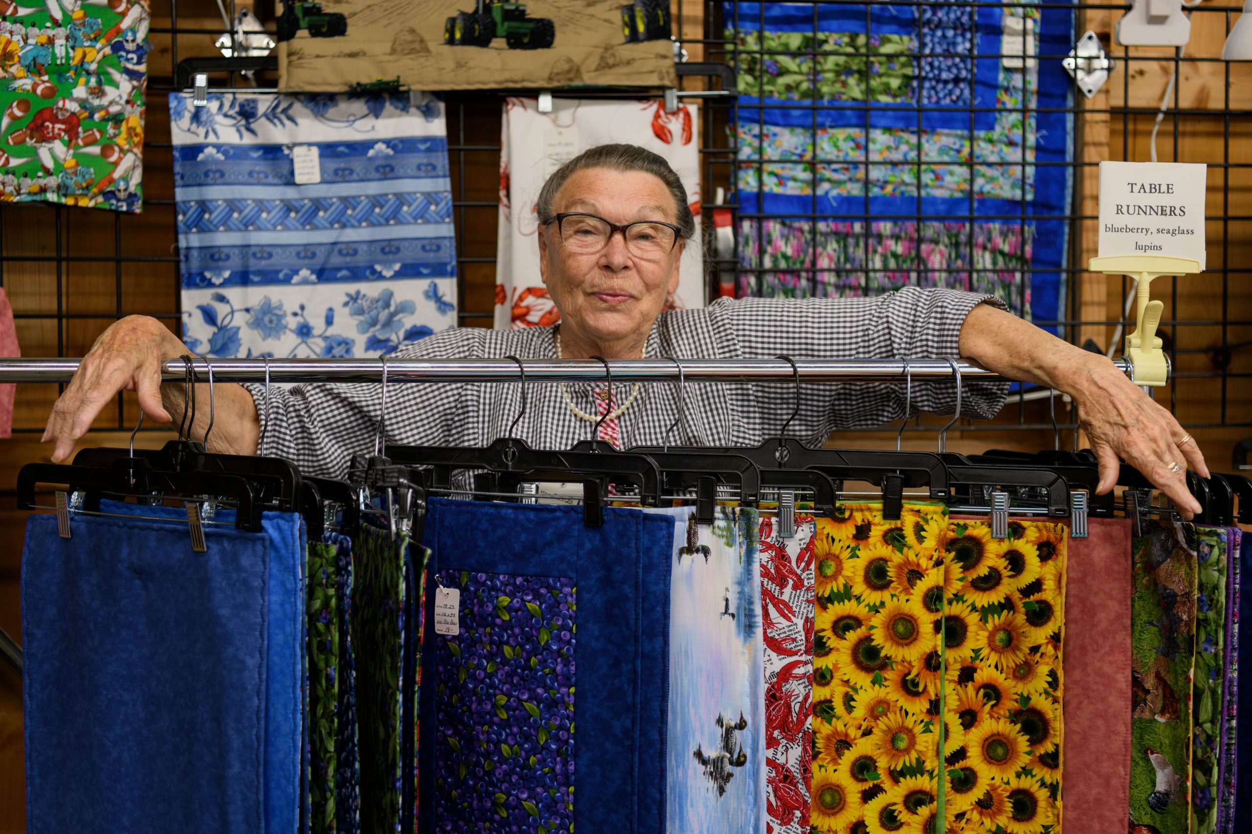 “I used to do 20 fairs a year,” she said before waiting on one customer who buys a blanket every year. Prouty said she’s now down to three fairs a year, coincidentally also the number of times she’s been married.