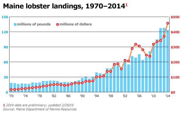 “Current stock abundance is at all-time highs,” says the Atlantic States Marine Fisheries Commission's 2015 lobster stock assessment, issued in September.