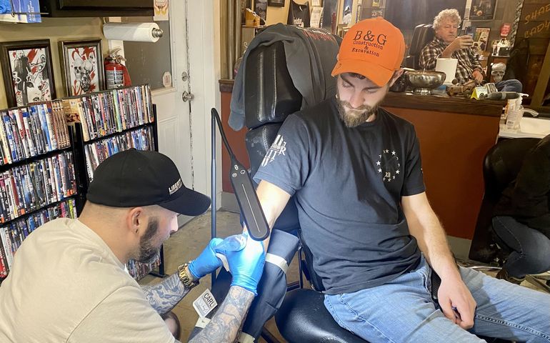 The shop could only allow clients and no guests on the premises during the pandemic, and clients had to be masked. But the tattoo industry was more prepared than most to implement COVID-19 health protocols, Wood said, because it already had many safety protocols in place such as sterilizing instruments. Tattoo parlors are also accustomed to using gloves and disinfectants. Pandemic rules didn’t change daily operations much.