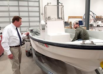Priest’s knack for chasing down opportunities in composites has sometimes led him astray — in 2005, the company’s sales team couldn’t figure out how to break into the ATM manufacturing market, and a $200,000 push last year to convince the Navy to buy composite rudders rather than the traditional steel has yet to bear fruit. But more often than not, Priest’s ingenuity has strengthened Kenway. Annual revenue has more than doubled since Priest’s first effort to diversify Kenway’s client base — from around $2.5 million in 1995 to $6.5 million in 2008, with a 10.5% profit last year — and the number of employees has grown from around 30 to 72. In February, Kenway Corp. closed its Palermo and Vassalboro facilities and consolidated in Augusta. Today, boatbuilding makes up 30% of the company’s revenue, and the remainder comes from sales of industrial parts.