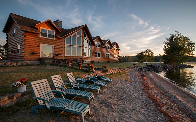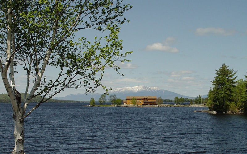 The lodge, on four acres, is situated on a peninsula with over 1,000 feet of frontage on South Twin Lake and offers direct views of Mount Katahdin from its five en suite guest rooms. The property includes a private beach, patio, fire pit and paddlesport gear, as well as access to the onsite marina for personal watercraft.