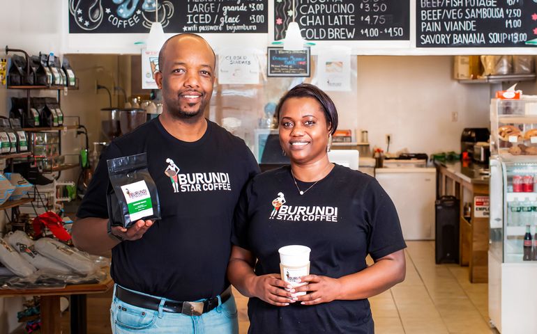 Today, on St. John Street in Portland, she owns Burundi Star Coffee, a café and retail shop she opened in March 2020 and runs with her husband, André Nzeyimana. The name of the business is a nod to the bright night sky that gave her comfort in her East African homeland.