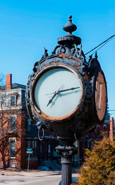 Another recent achievement is the restoration of the Hay and Peabody Seth Thomas Clock, which was unveiled by the Francis Hotel in Portland during a public ceremony in October. Installed in 1925 to mark Hay and Peabody’s 25th anniversary, the cast-iron street clock stands 18 feet tall with four illuminated faces. It is believed to be one of only 80 street clocks ever produced by the Seth Thomas Clock Co., the same manufacturer that made the clock at Grand Central Terminal in New York City.