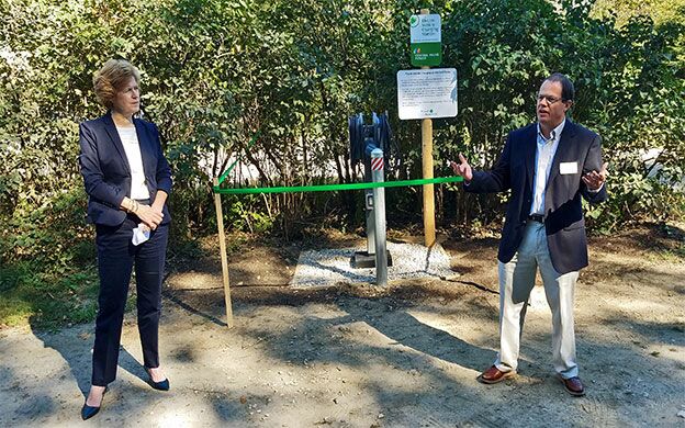 The 65 acres of winding trails, orchards and hiking trails of the Gilsland Farm Sanctuary in Falmouth might not seem like the ideal location for an electric vehicle charging station, but Ole Amundsen, the executive director of Maine Audubon, sees it differently.