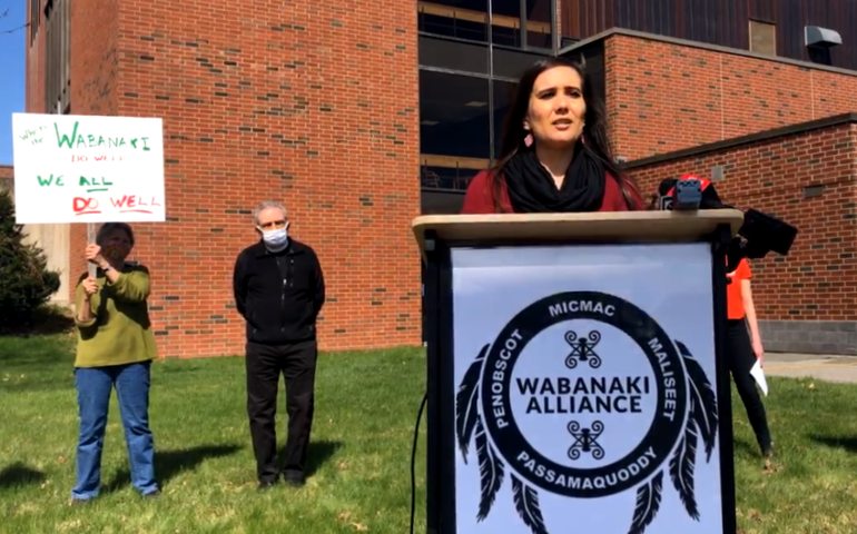 Also speaking was Abbigail Bradford, of Maine Conservation Voters, on behalf of the state Environmental Priorities Coalition, who said, “We believe restoring the Wabanaki’s inherent rights to manage their lands, waters and natural resources will help regenerate those ecosystems and make them more resilient to climate change,” Bradford said.