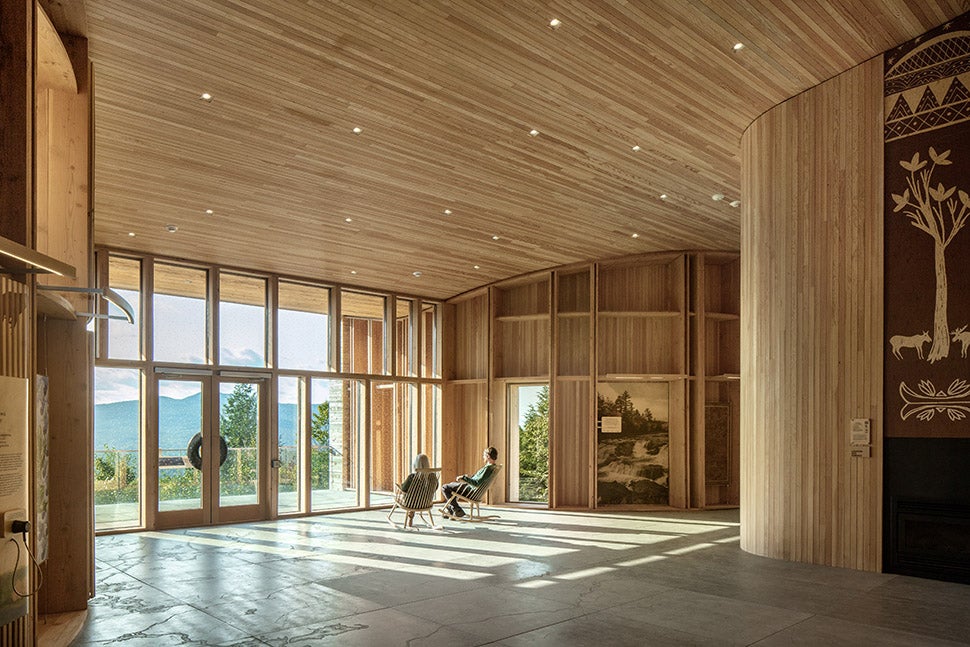 The interior features interpretive exhibits that provide visitors with insights into the natural and cultural significance of the monument, particularly through a Wabanaki perspective.