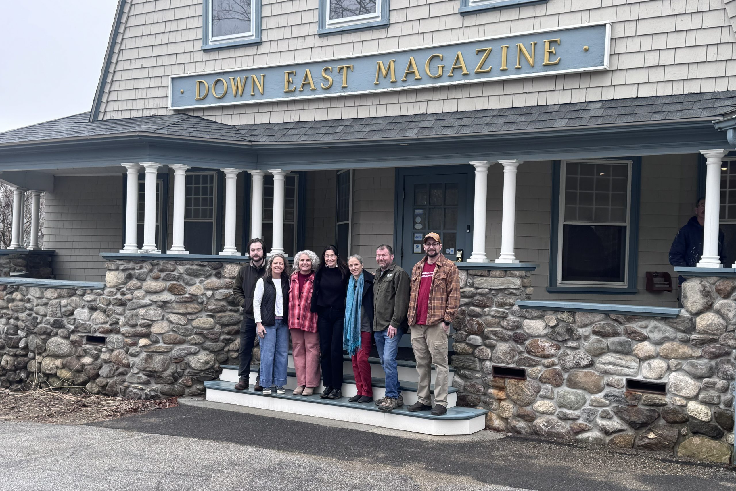 Midcoast Habitat for Humanity staff stand in front of their new home at the iconic Down East magazine building, in Rockport. PHOTO / COURTESY HABITAT FOR HUMANITY