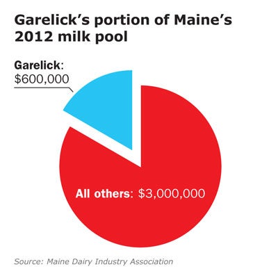 Even so, the $100 million, Portland-based dairy's initiative represents a high-stakes counter-move to a corporate giant that earned almost $13 billion in 2012 and controls 70% of New England's dairy market. By closing its Garelick Farms facility, Dean Foods removed one of Maine's largest dairy processors from the state's $570 million dairy industry and eliminated roughly $600,000 it had been paying annually into the Maine Milk Pool, a fund that stabilizes Maine dairy farmers. Maine milk processors pay a 13 cents-per-gallon surcharge to the pool; the Garelick plant supplied 17% of the $3.6 million paid to dairy farmers last year.