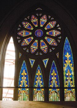 The 152-year-old Chestnut Street Church in Portland, which is currently being rehabilitated into an upscale restaurant, is one of those architectural masters that stir up strong reactions. The brick-and-brownstone Gothic Revival church was designed to awe its occupants and reinforce their faith: Soaring wooden arches leap down its long sanctuary to an ornate, white altar meant to be a replica of the church façade, but rather resembles a wedding cake for giants. Light seeps into the church through a series of stained-glass windows shaped like spears, and a massive rose window imported from Florence in the mid-1800s glows above the church’s main doorway.