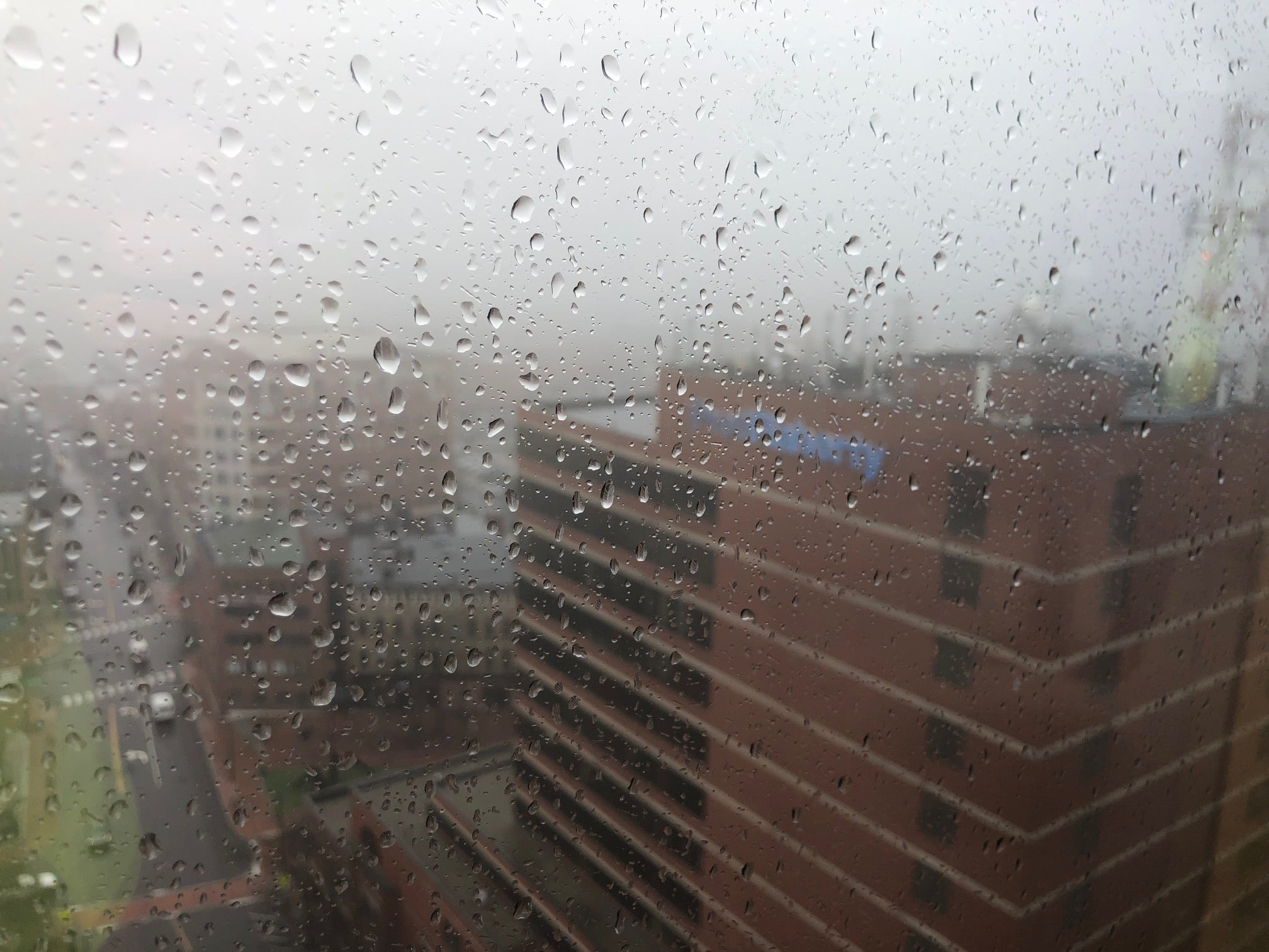 The day was drizzly with low clouds, but it offered an interesting perspective on downtown Portland and the Old Port. Buildings that look big at street level looked dainty from the view on the 18th floor. On a clear day, you’d be able to see beyond Peaks Island, but earlier this week a view to the water was about all that was available.Â