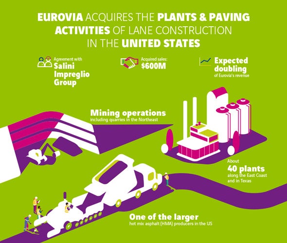 In an August news release announcing its plans to acquire Lane Construction’s asphalt plants and paving division, Eurovia said the acquisition would double its size in the United States.