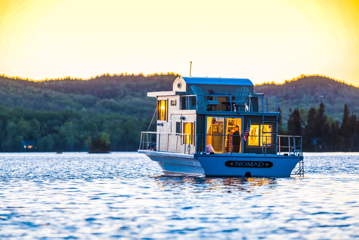 Another is Rheanna Sinnett, a U.S. Navy reservist who rents out two floating houseboats on Rangeley Lake through a business she started in 2018 called Just Add Water Floating Camps. She rents out a restored 1968 Thunderbird Drift-R-Cruz called Nomad, and the custom-built Roam she added in July 2019.