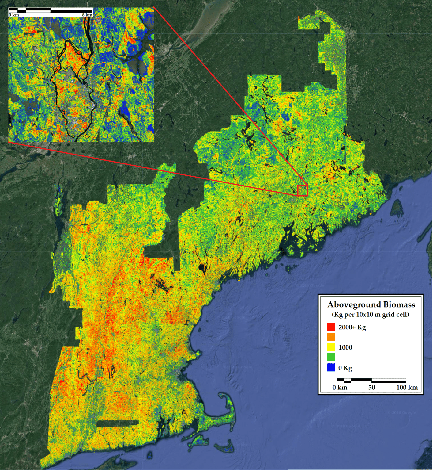 In New England, LiDAR data cover nearly the entire geographical extent of the region. But the region’s forest attributes have not been mapped. When used to depict three-dimensional forest canopy structure, LiDAR data are considered useful for predicting forest attributes such as biomass, stem density and species, which in turn contribute to carbon accounting, forest management and wildlife habitat characterization.