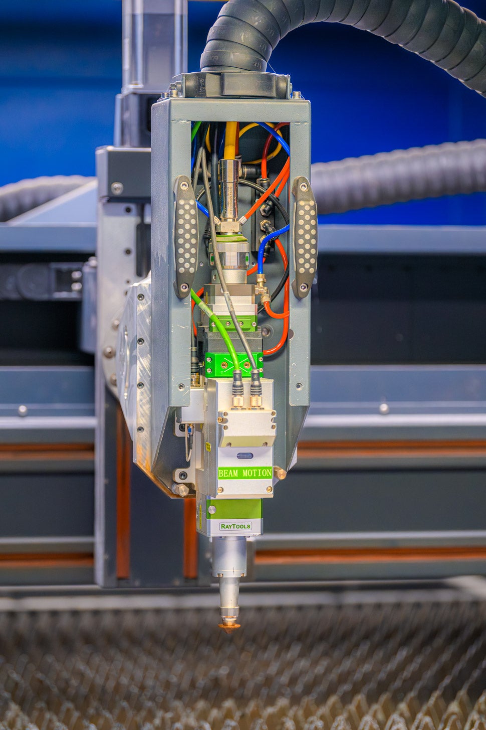 A laser cutting head used to cut metal. PHOTO / JIM NEUGER