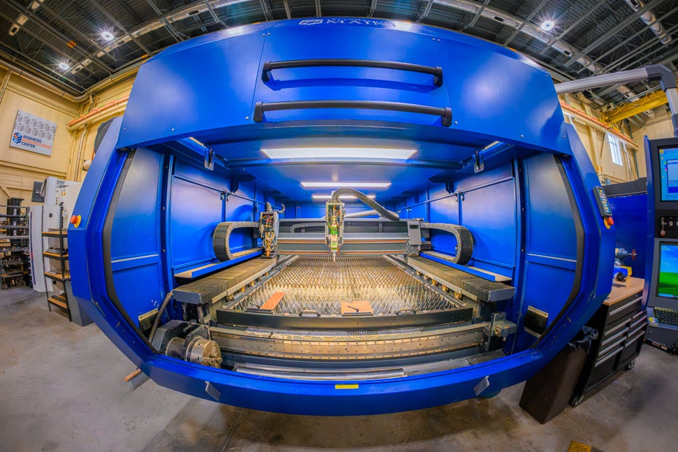 Laser cutting machine at the University of Maine’s Advanced Manufacturing Center. PHOTO / JIM NEUGER