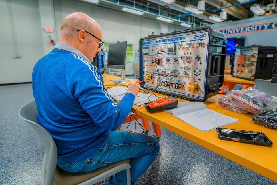 “We have a lot of equipment and are set up to train in a flexible manner,” says Denholm. “That makes the program open and applicable to anyone, whether you’re an incumbent worker — say, an electrician or technician — and that organization wants to start bringing on robotics and automation, and that individual needs upskilling. We’re able to support those folks.”