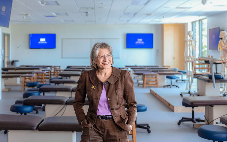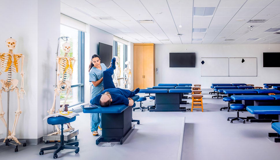 At UNE’s College of Osteopathic Medicine, “we teach our students through a philosophical lens that says that health is really the summation of what’s happening in the body,” Carreiro says. That includes specialized training on using “compassionate touch,” to gently stretch, apply pressure and manipulate joints and muscles to ease pain. That’s done in Osteopathic Manipulative Medicine Clinics, including a student-directed, physician-supervised community facility in Portland with twice the capacity it had in Biddeford.