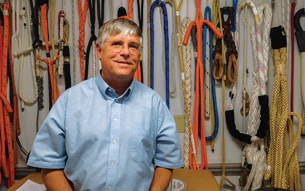 Bill Putnam, president of Saco-based rope maker Yale Cordage, points to a large reel spinning what looks like dental floss. All rope, no matter how thick it ends up, starts as a thin thread that is built up by twisting and braiding it with other threads and then coating it for various applications.