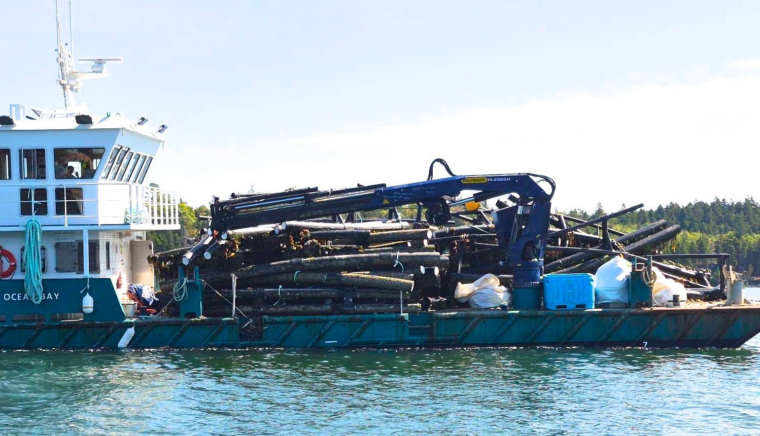 New DHC’s 72-foot barge Ocean Bay traveled from its home waters of Eastport, providing a workspace for the crew. A 24-foot skiff was also brought in to assist with the cleanup.