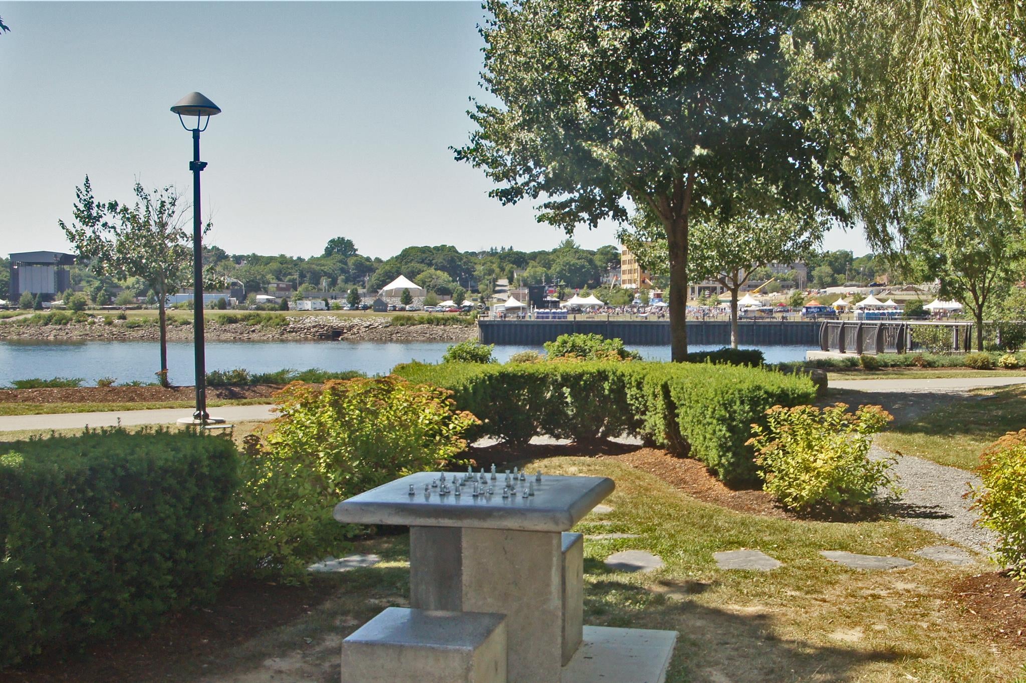 The first half of the riverwalk runs from Hardy Street to the Joshua Chamberlain Bridge; this section opened in 2013. The second phase, running from Penobscot Street to the Joshua Chamberlain Bridge, doubled the trail’s length. Construction of the second phase included cutting through an existing opening at the base of the bridge in order to create a tunnel and join the two phases.