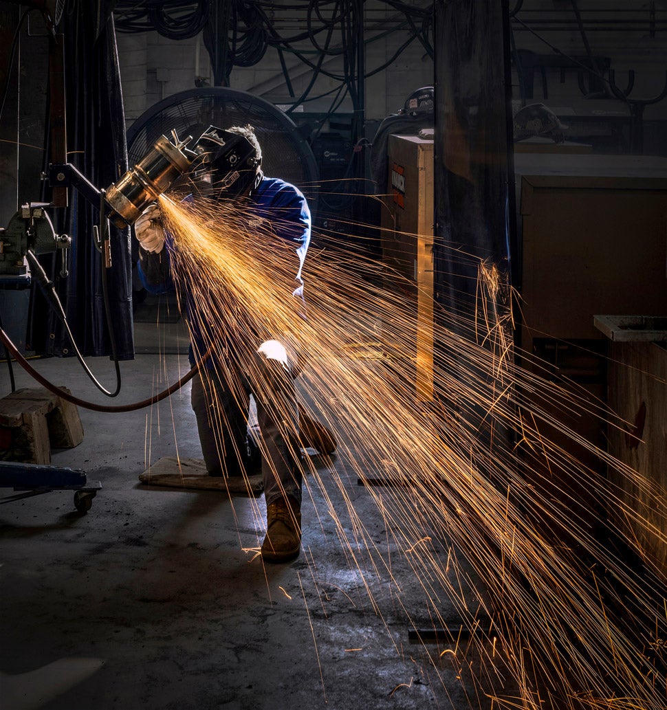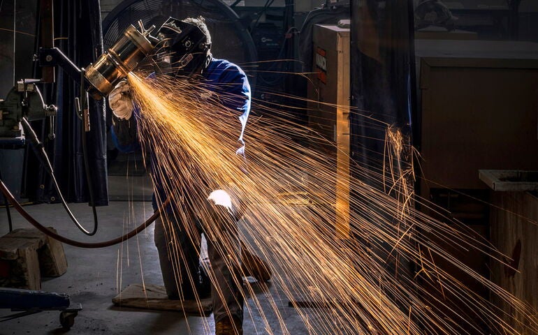 The Manufacturers Association of Maine has teamed with SkillsUSA Maine to forge stronger ties between manufacturers and young people while expanding awareness of career pathways. Shown here is a welding instructor at the Bath Iron Works Training Academy at Brunswick Landing.