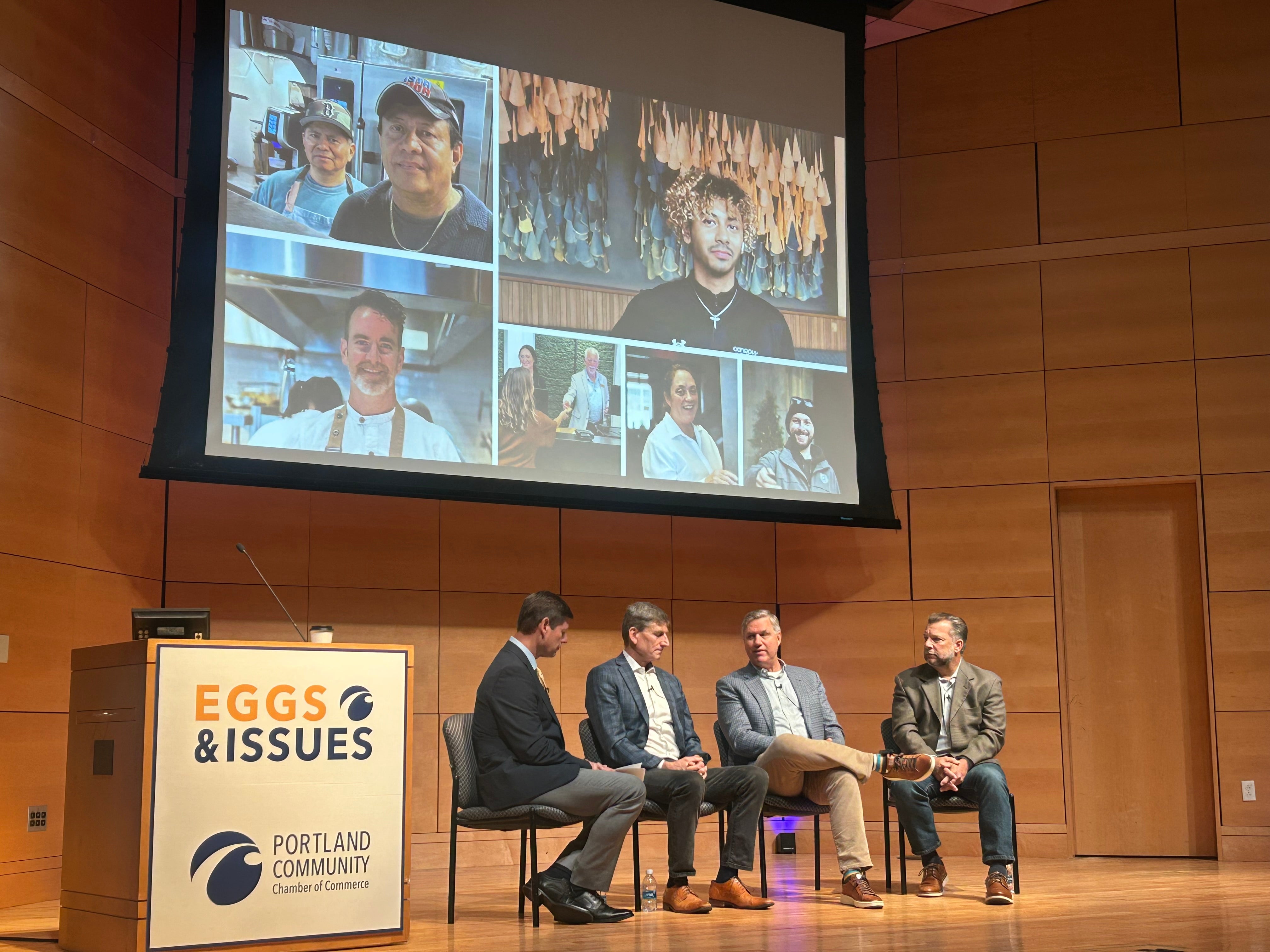 Schultzel was joined at the Portland chamber's “Eggs & Issues” breakfast forum by Matt Arrants, a hotel investor, developer and advisor with the Arrants Co; and Jim Brady, co-founder and president of Fathom Cos. whose projects include a planned hotel in an historic building on Monument Square.
