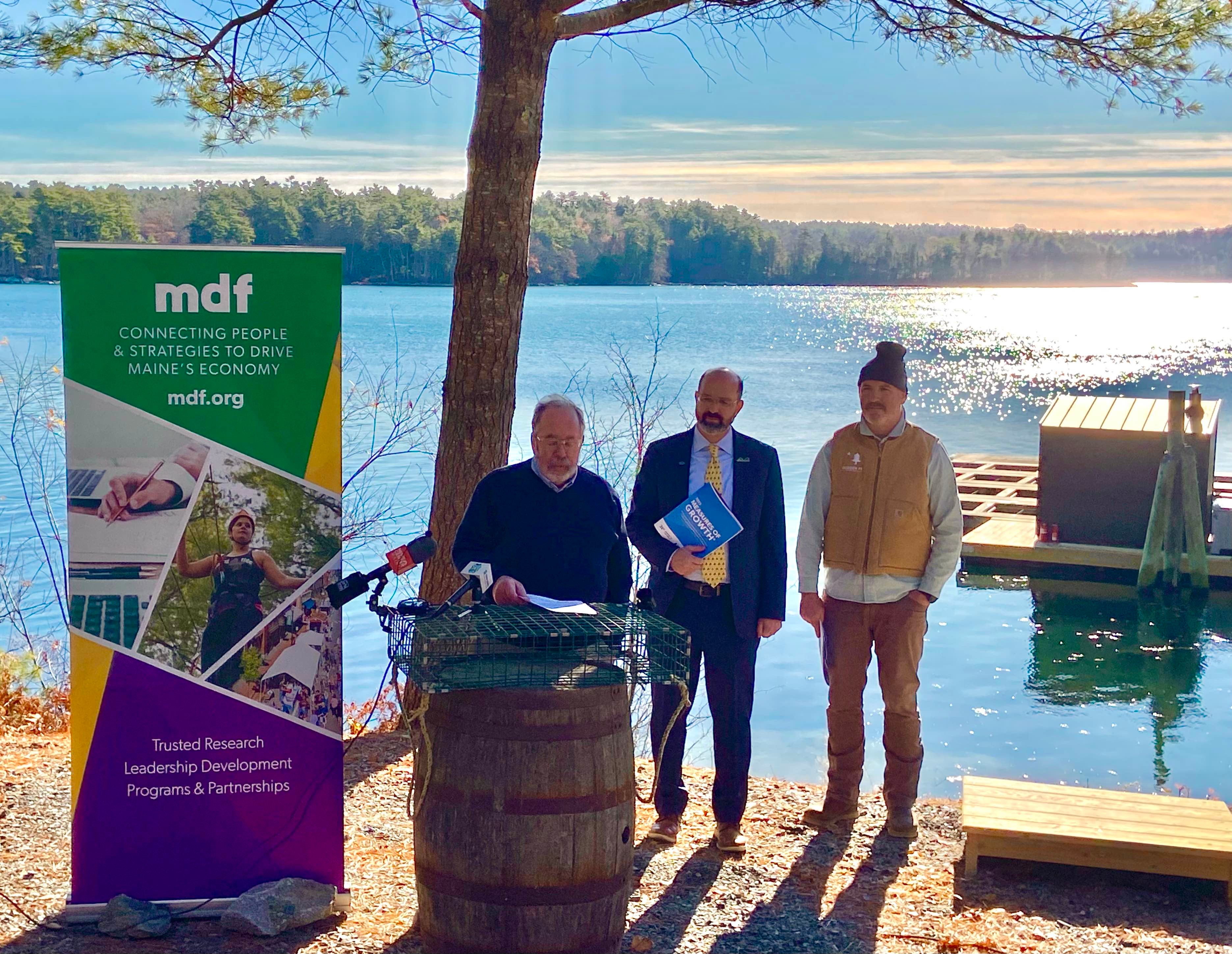 The Maine Economic Growth Council released its annual "Measures of Growth" report in Edgecomb on Wednesday. Shown here (from left) are Steve Von Vogt, co-chair of the Maine Economic Growth Council; Yellow Light Breen, president and CEO of the Maine Development Foundation; and Ryan McPherson of Glidden Point Oyster Farm.