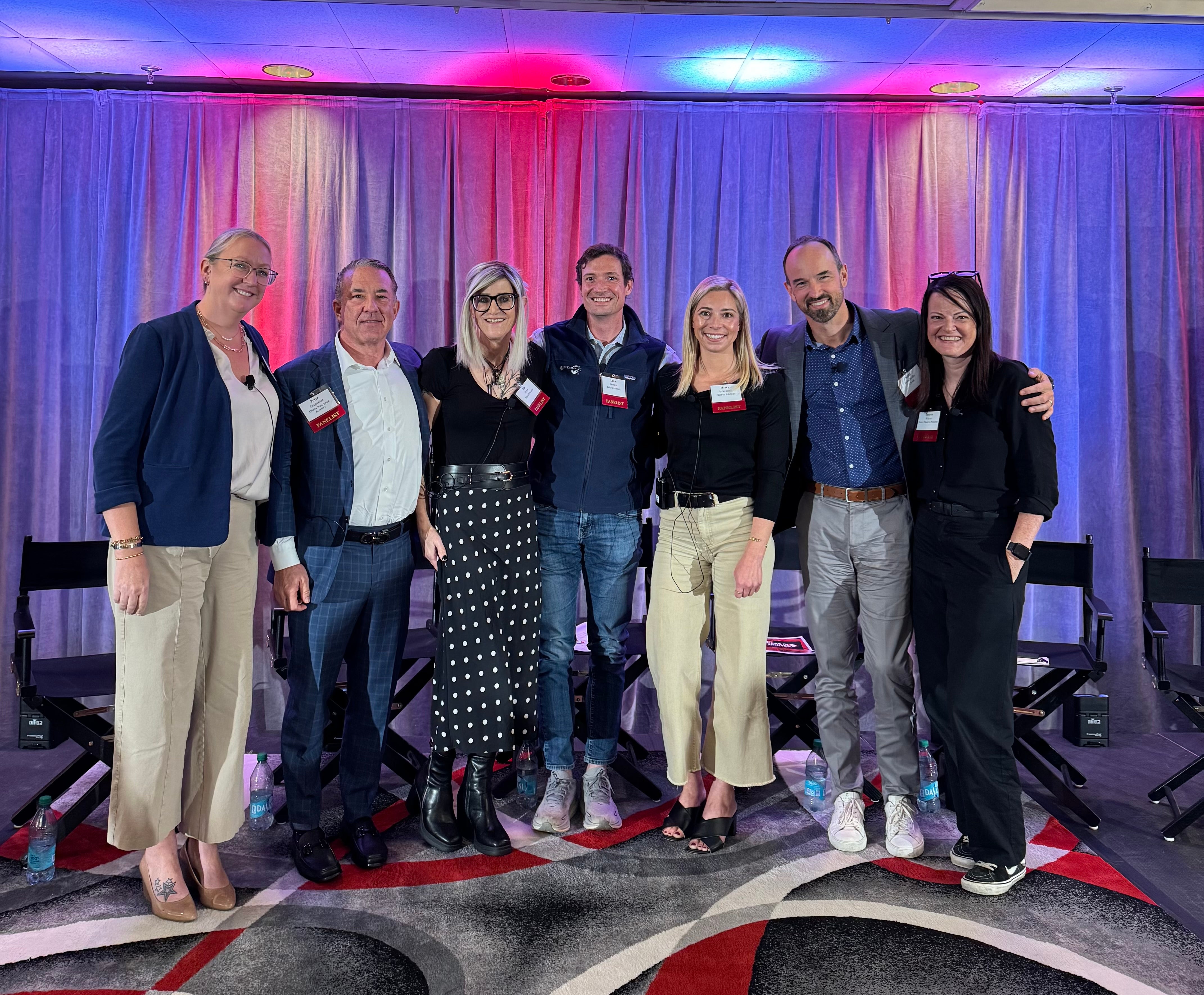 She was joined onstage by fellow panelists Peter Carpenter, chief operating officer at Alliant Insurance Services; Gia Drew, executive director of EqualityMaine; Luke Holden, founder and CEO of Luke’s Lobster; Haley Israelson, CEO of ElleVet Sciences; and Matt Prindiville, former CEO of CLYNK, a South Portland-based bottle redemption and recycling company acquired last week.