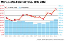 Maine’s 2012 seafood harvest set an all-time record, bringing in an estimated value of $527.7 million, according to preliminary statistics from the state’s Department of Marine Resources.