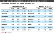 Home prices in Maine rose 9.22% in July from a year ago to a median sales price of $225,000, according to Maine Listings. Volume increased 9.65%, with 1,864 homes changing hands last month in the state compared to 1,700 in July 2017.