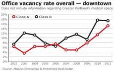 A survey of the greater Portland office market shows signs of a rebound after five years of declining vacancy and lease rates, but some brokers are still skeptical that the market has achieved meaningful growth.
